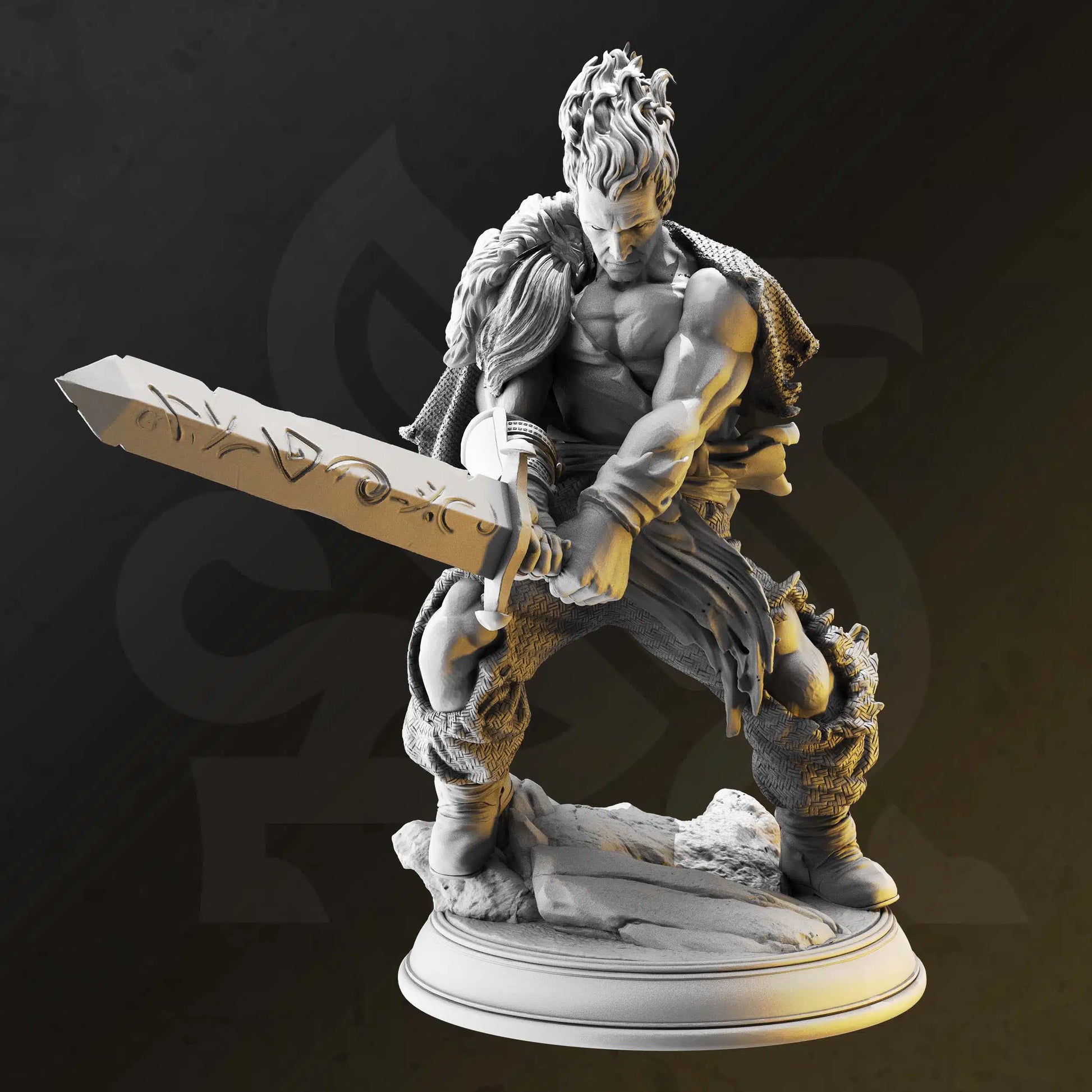 Fire Genasi Barbarian / Fighter Male D&D Miniature